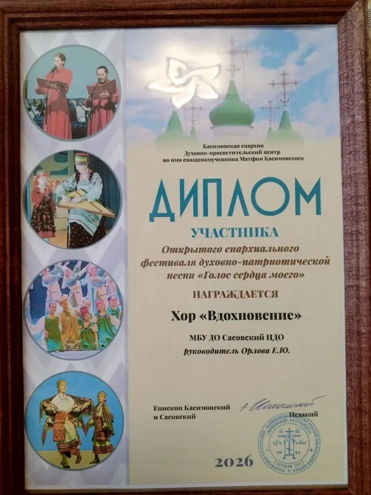 Хор "Вдохновение" центра дополнительного образования "Родина" (руководитель Орлова Елена Юрьевна) принял участие в фестивале. В их исполнении прозвучала трогательная песня-молитва «Будь со мною».